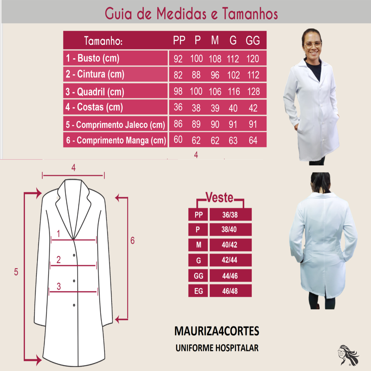 Jalecos da Mauriza4Cortes Uniforme Hospitalar, preciso de mais alguns detalhes cruciais: