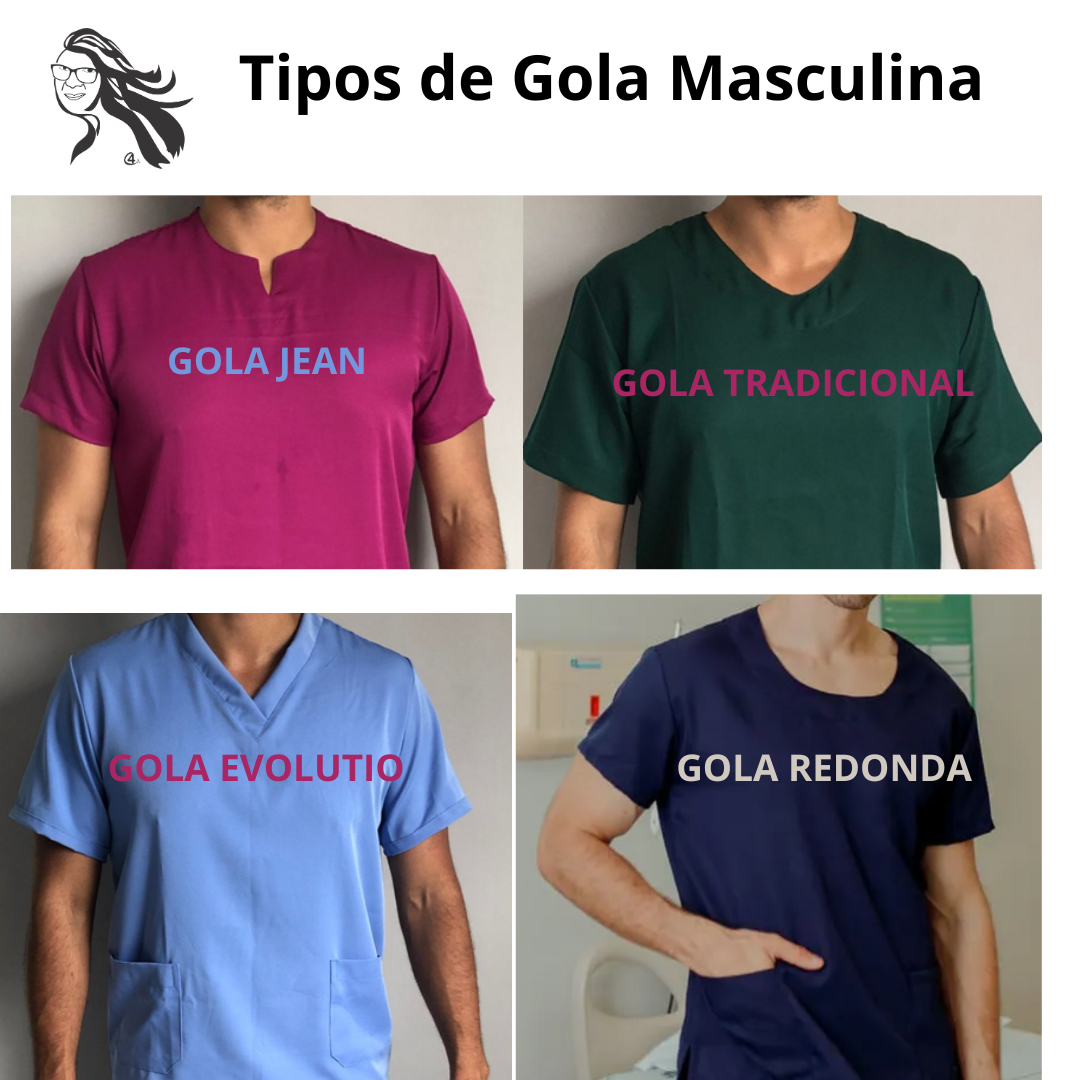 Camisa: Manga curta, sem gola e decote em Tradicional, Jeane ou Evolution.